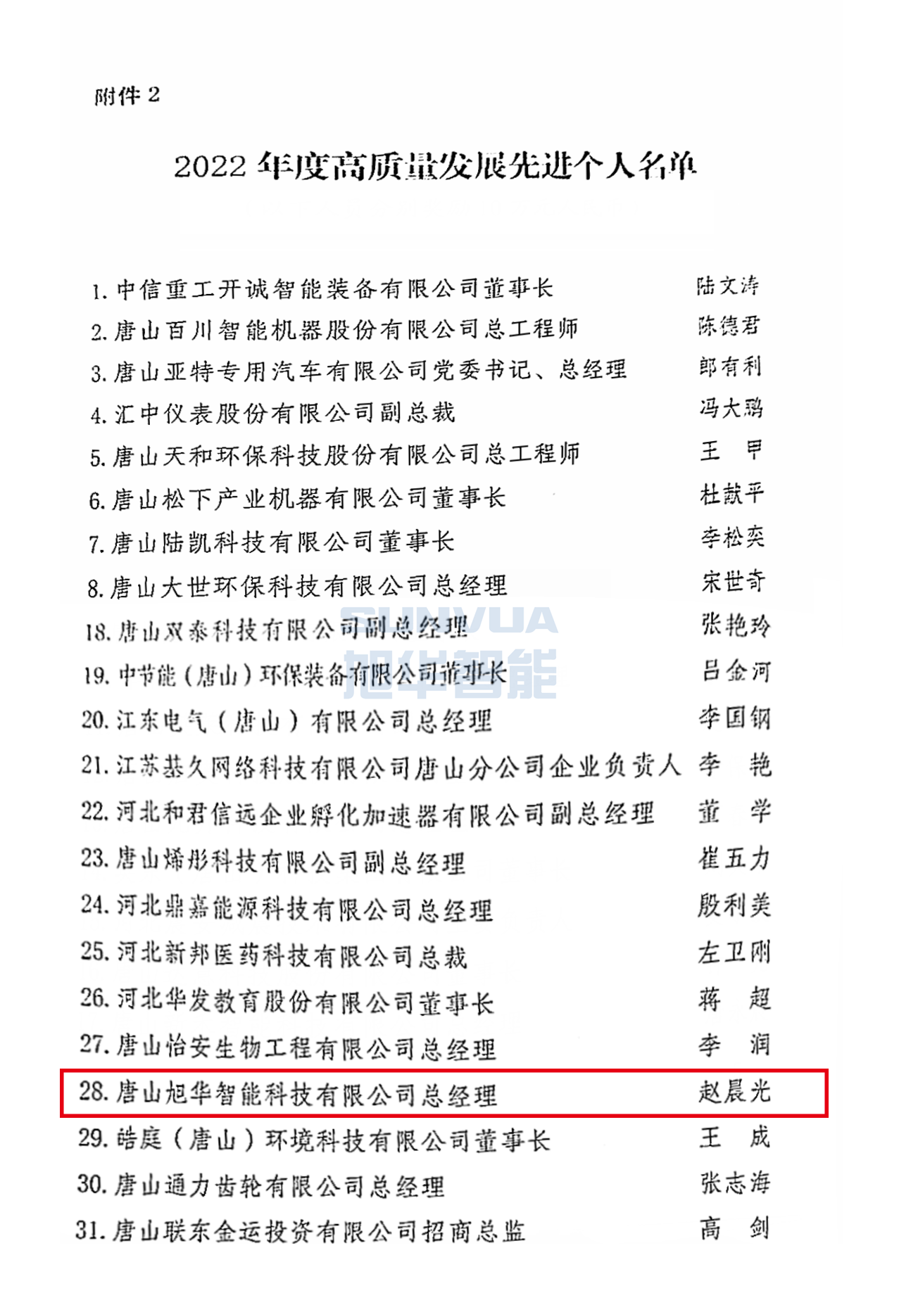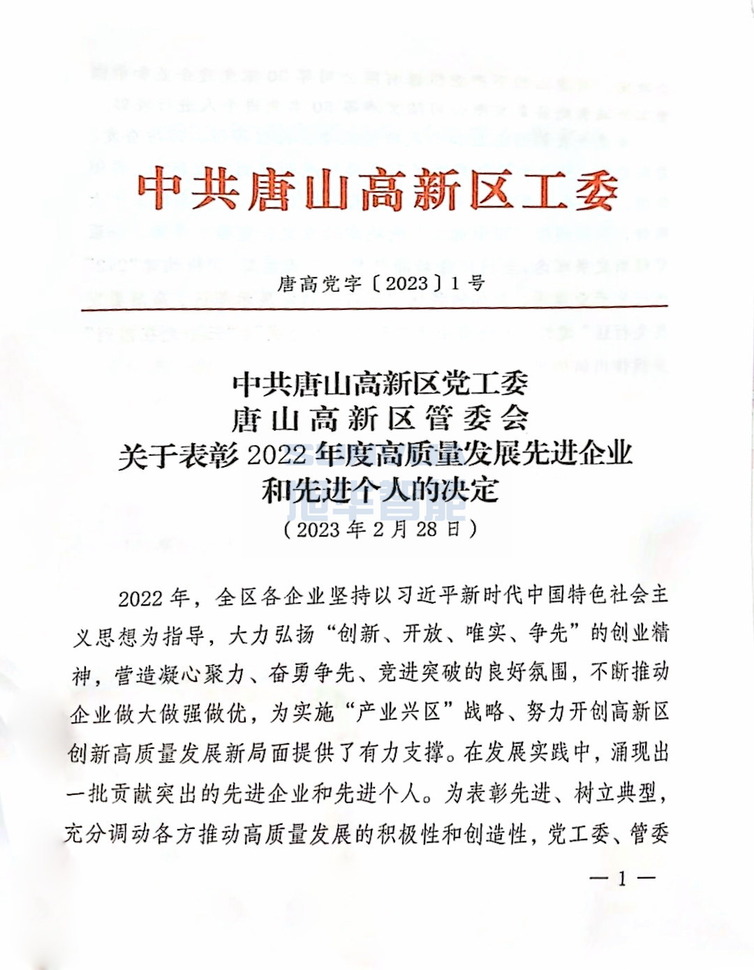 2023年3月3日,为进一步营造创新创业良好氛围,表彰先进、树立典型,不断有助于企业高质量开展。唐山高新区召开工作会议,会上,唐山利来国际智慧科技有限公司取得表彰,被评为“2022年度高质量开展先进企业”,总经理赵晨光荣获“高质量开展先进个人”荣誉称号。